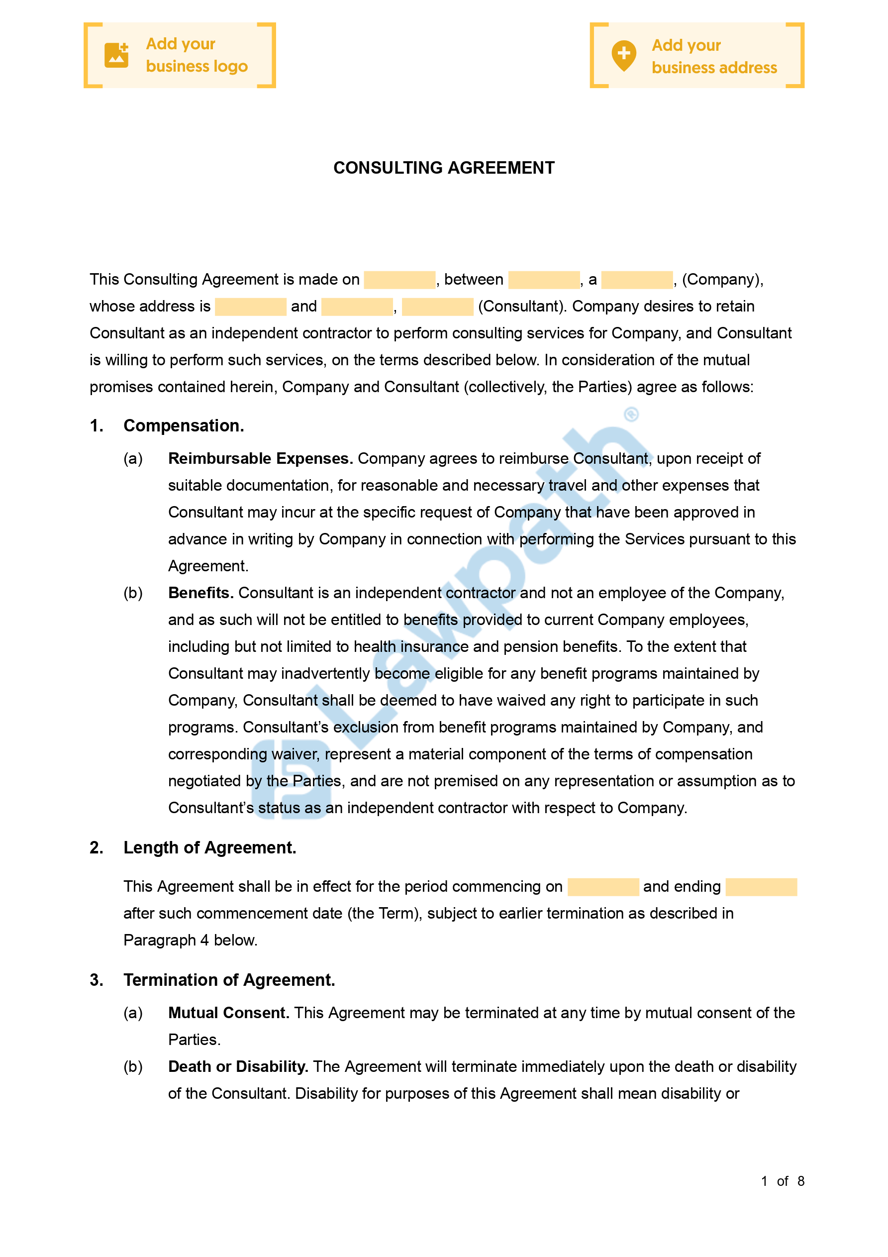 This Consulting Agreement is designed a private employer retaining the services of a consultant to work as an independent contractor.