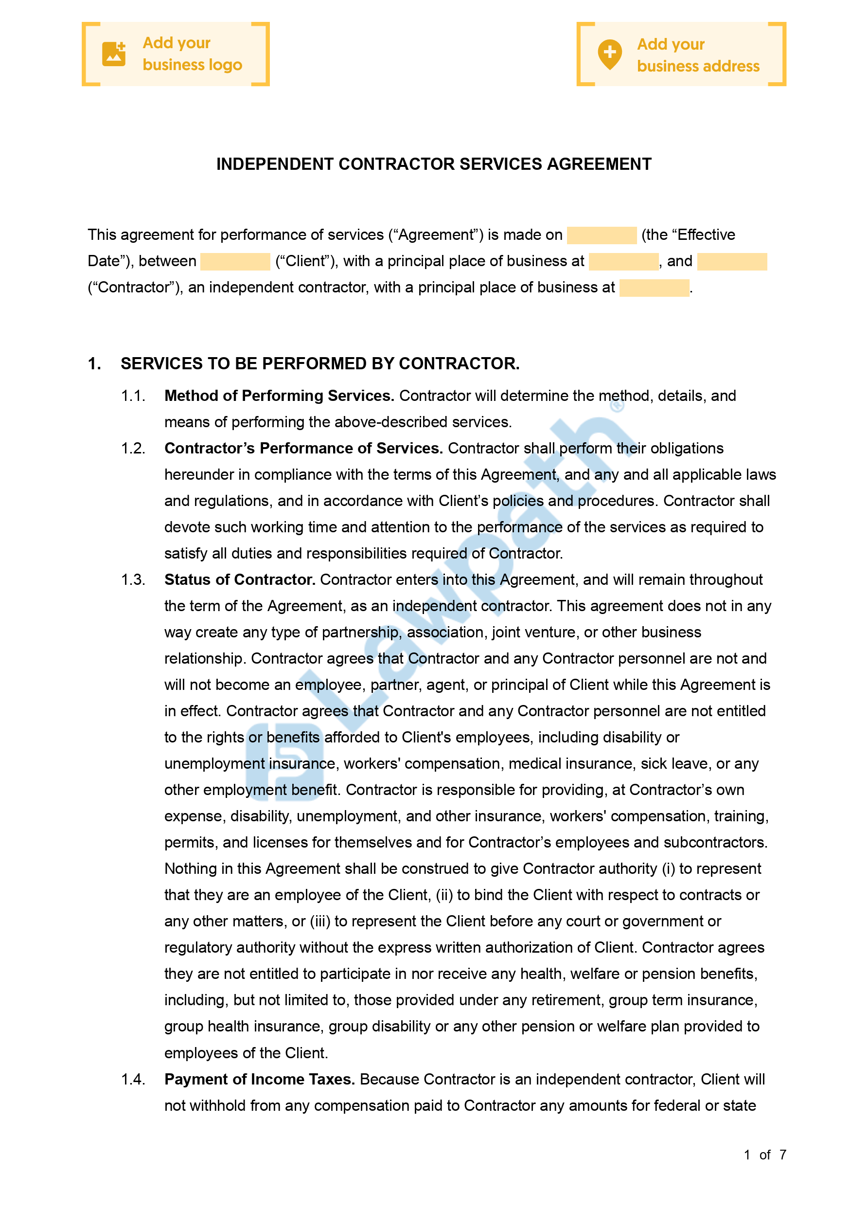 This is an Services Agreement between an independent contractor and the party for whom the independent contractor will perform specified services.Document Overview