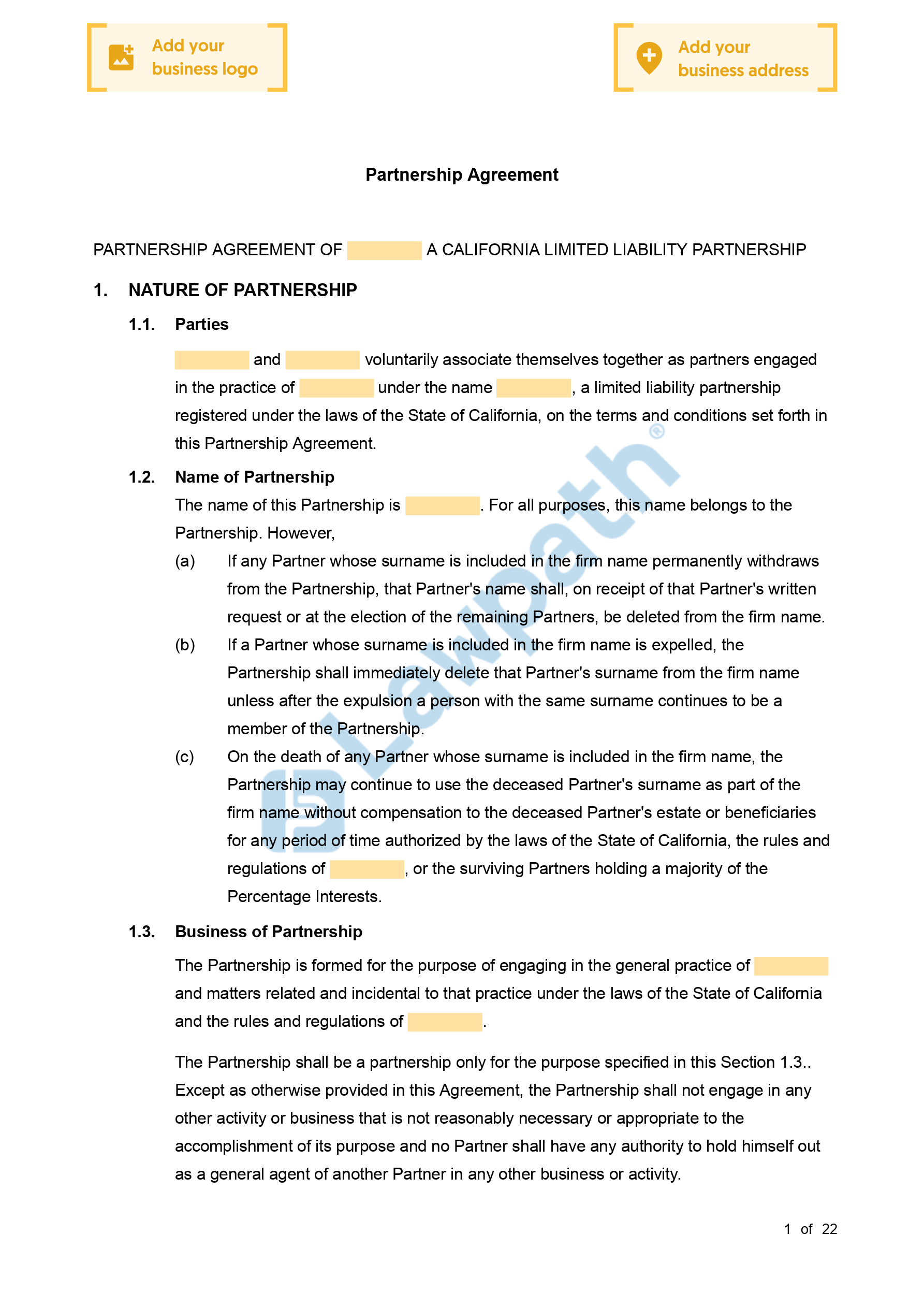 This Limited Liability Partnership Agreement is tailored for a California professional practice, including law, public accountancy, architecture, engineering and land surveying.