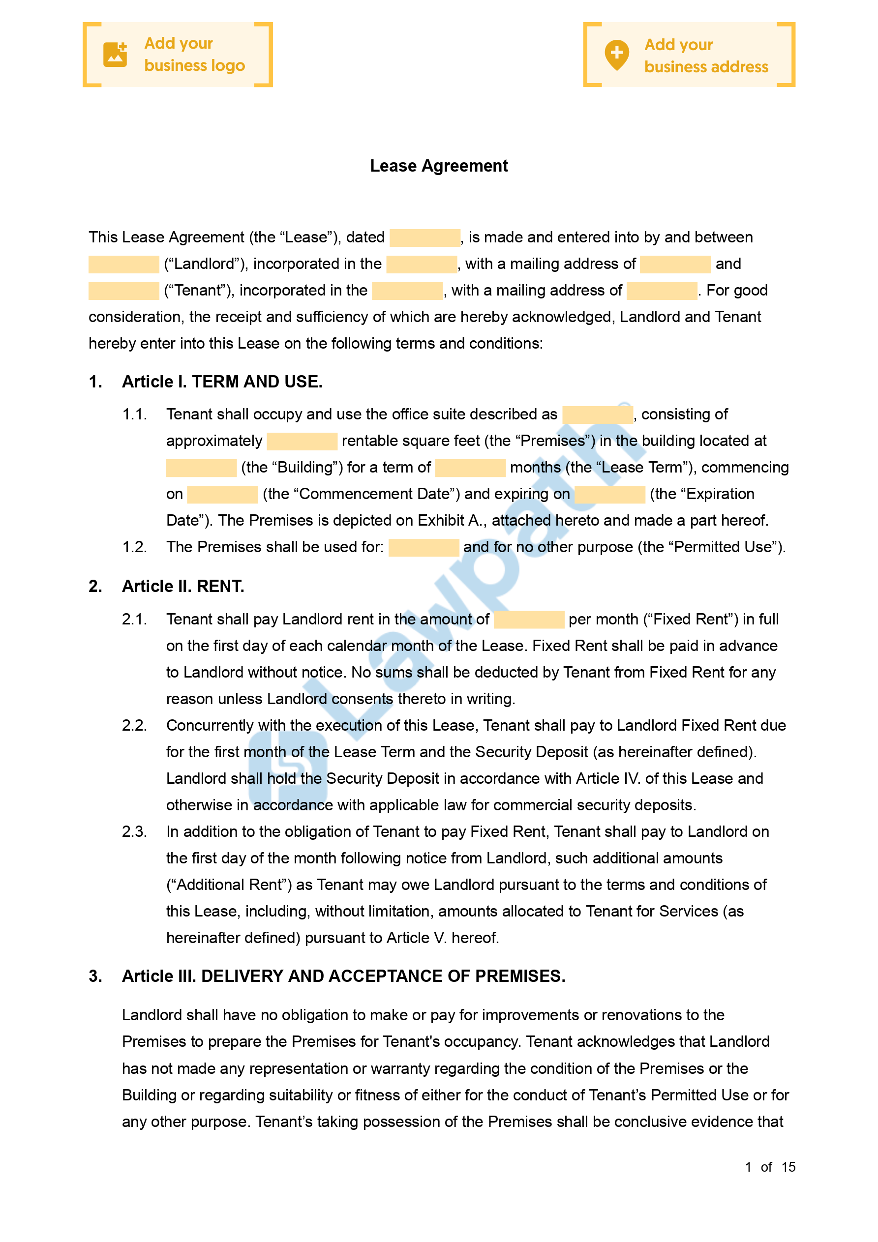 This Office Lease Agreement is for use in a simple leasing transaction for preexisting office space in an office building.Document Overview