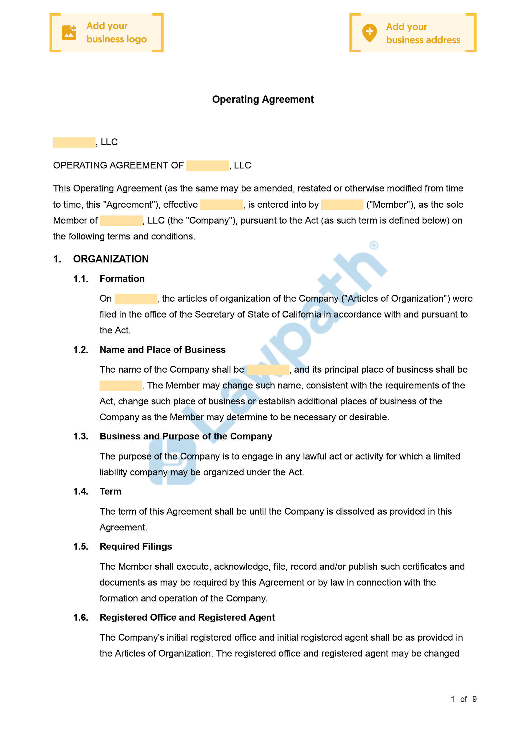 Since the company only has one member, clauses relating to voting and transfers are less prominent than operating agreements for limited liability companies with multiple members.