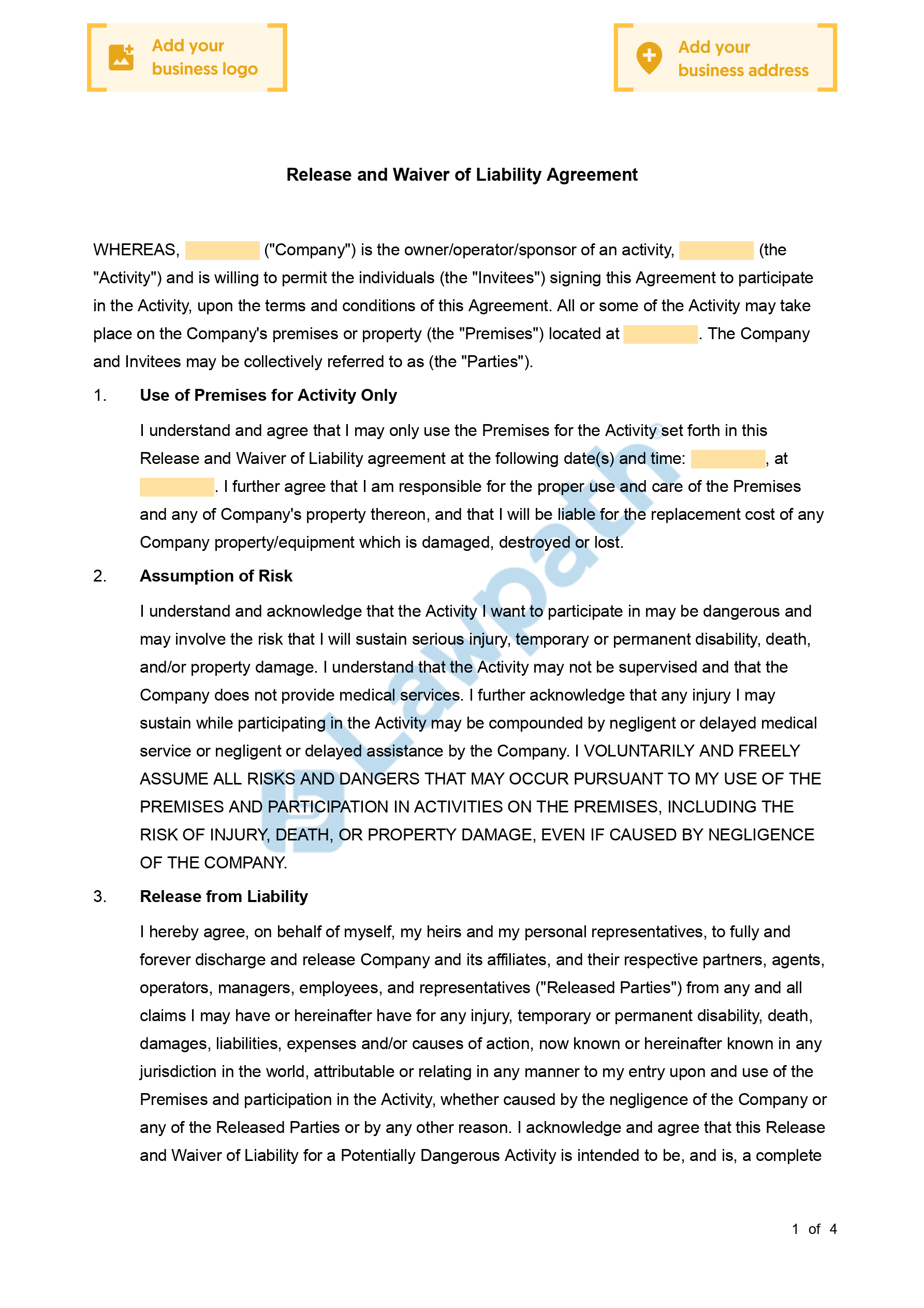 This customisable Release Form is governed by California law and can be used by a property owner, sponsor or operator where people are participating in an activity that is potentially dangerous.Document Overview