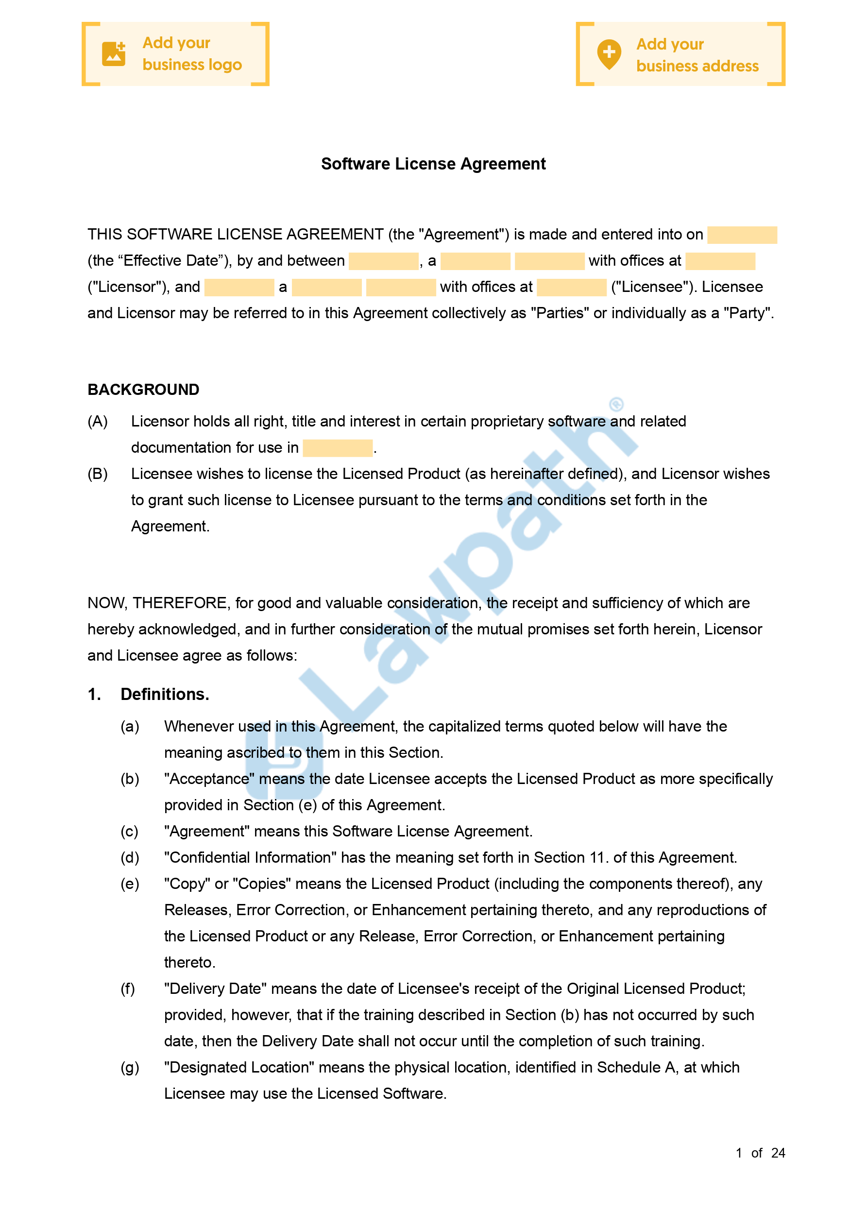 Because software can be complex and non-standardized, it’s important to make sure that the agreement, especially the definitions, accurately reflect your needs and expectations as a licensee.