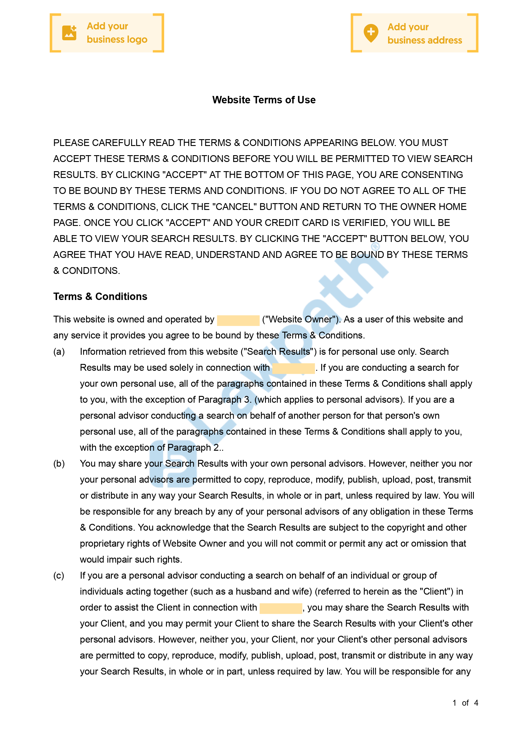 This Website Terms of Use (Information for a Fee) sets forth the terms and conditions that will govern users access to the website and acceptable uses of the website’s services, where the website provides information for a fee.Document Overview